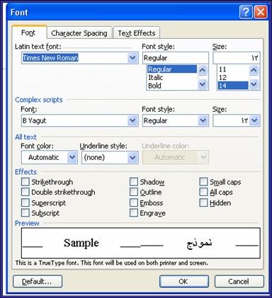 Preview : ظاهر فونت را قبل از اعمال آن در صفحه نمایش نشان می دهد.