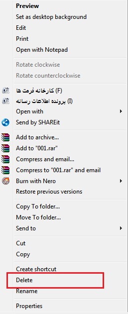 بر روی گزینه Delete کلیک چپ می کنیم.