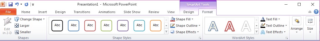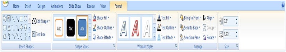 بعد از کشیدن تصویر، یک زبانه «مخفی» با نام Format به زبانه های اصلی اضافه می شود. گزینه های این زبانه برای ویرایش شکل کشیده شده به کار می رود.اگر زبانه Format مخفی بود بر روی شکل ترسیم شده کلیک کنید تا زبانه Format ظاهر شود.