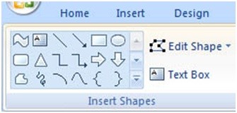 این بخش دارای سه قسمت است. قسمت نخست که پیش تر هم توضیح داده شد، برای درج اشکال گرافیکی به کار می رود. با استفاده از گزینه Edit Shape می توان تغییراتی بر روی شکل درج شده اعمال کرد.