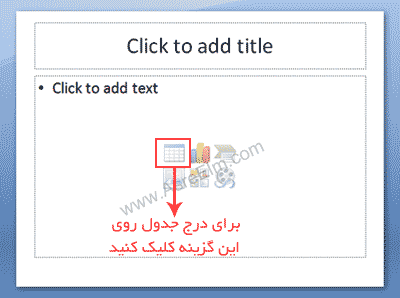 هنگامی که قالب یک اسلاید با جانگهدار عنوان و متن (Title and Content) را انتخاب کنید به طور پیشفرض 6 گزینه پیش روی شما قرار داده میشود که با کلیک بر روی آنها به سادگی میتوانید نوع محتوایی که میخواهید به درون اسلاید وارد کنید را مشخص کنید.