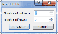 با کلیک بر روی آیکن مشخص شده در تصویر بالا، پنجره ای برای شما نمایش داده میشود که میتوانید تعداد ستونها و ردیفهای جدول را وارد نمایید: