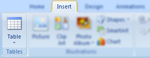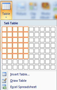اولین گزینه از سمت چپ درون منوی Insert، گزینه ی Table میباشد. با کلیک بر روی این گزینه منویی برای شما باز میشود و میتوانید تعداد ستونها و ردیفهای جدول را تعیین کنید: