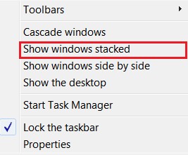 مرتب سازی پنجره ها به روش ردیفی یا افقی یا استَکت (Stacked) در سیستم عامل ویندوز 7 سون