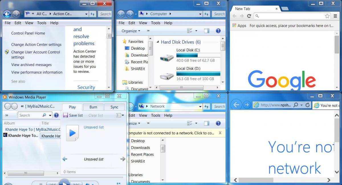 مرتب سازی پنجره ها به روش پهلو به پهلو یا کنار هم یا ساید بای ساید (Side by Side) در سیستم عامل ویندوز 7 سون