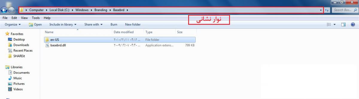نوار نشانی یا نوار آدرس بار (Address Bar) در سیستم عامل ویندوز 7 سون