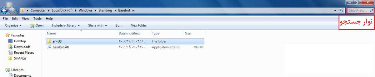نوار جستجو یا نوار سرچ بار (Search Bar) در سیستم عامل ویندوز 7 سون