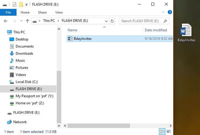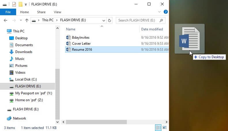 هنگامی که یک فلش مموری را به کامپیوتر وصل نمودید، می توانید با آن مانند هر پوشه دیگری در رایانه خود کار کنید، از جمله انتقال، ویرایش و یا حذف فایل ها. اگر میخواهید یک فایل را از فلش کپی نمایید و در ویندوز قرار دهید ابتدا روی آن کلیک نمایید سپس فایل را بِکشید و در پنجره مقصد رها کنید.