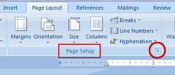 برای حل این مشکل، از منوی Page Layout و جعبهی گروه Page setup بر روی فلش مربوط به زیرمنو کلیک کنید تا پنجرهی تنظیمات برایتان نمایش داده شود: