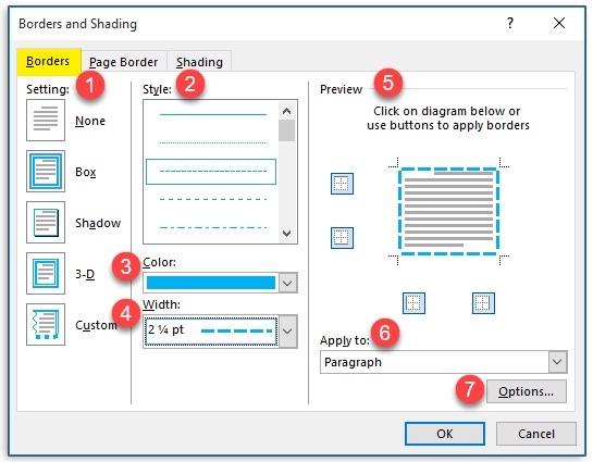 Borders یکسری ابزارها در اختیار شما قرار می گیرد تا بتوانید یک حاشیه به پاراگراف یا بخشی از متن اعمال کنید