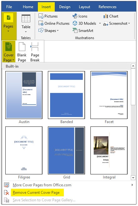 Cover page را در یک سند وارد کنید، قسمتهای موجود در