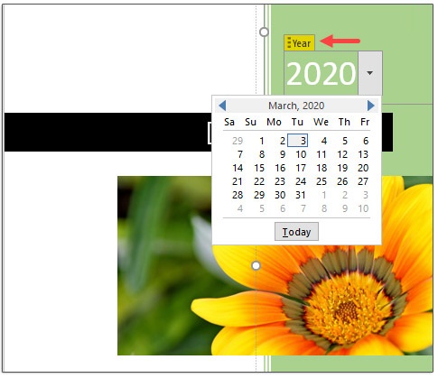 روی قسمتهایی که در نظر گرفته شده کلیک کنید و شروع به تایپ اطلاعات کنید. مثلا تاریخ سند را تعیین کنید. برای تغییر تصویر کاور، میتوانید روی آن تصویر راست کلیک کنید و سپس گزینه