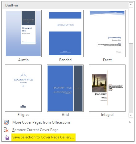 Cover Page وارد کردید، فراموش نکنید که باید آن را در مکانی که به راحتی در دسترستان باشد، ذخیره کنید. ابتدا تمامی موارد را به حالت انتخاب درآوردید. سپس در منوی کشویی