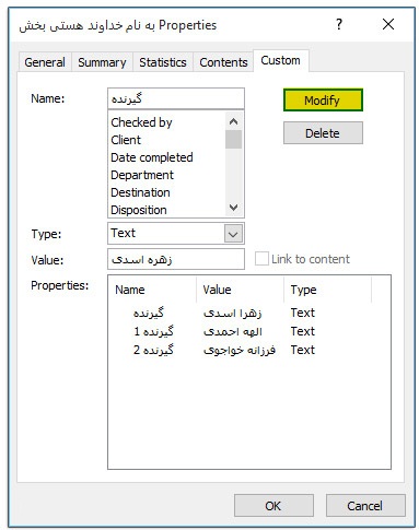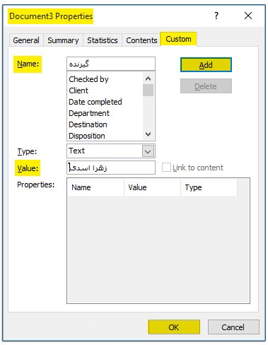 Advanced Properties رفته و همه قسمتهای مربوط به فرد جدید را وارد میکنم