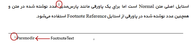 Footnote Reference است که اگر به هم بریزد با متن اصلی هم سطح می شود. استایل متن نوشته شده در پاورقی نیز