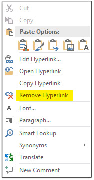 Remove Hyperlink کلیک کنید