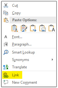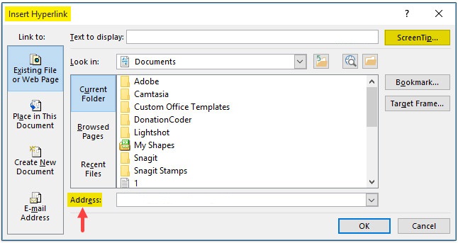 Insert Hyperlink، روی