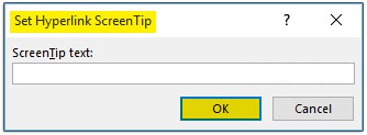 ScreenTip کلیک کنید. (این دکمه در تصویر بالا هایلایت شده است) در پنجره باز شده متن مورد نظر خود را وارد و در نهایت روی
