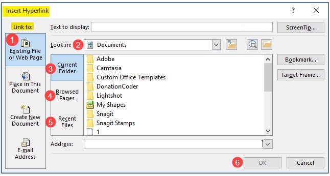 Insert Hyperlink باز میشود. در کادر