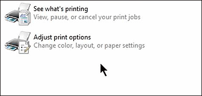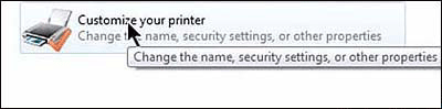 Device به امكاناتي كه براي استفاده از اين دستگاه در اختيار داريد دسترسي خواهيد داشت. در بالاي پنجره تصوير پرينتر را مشاهده ميكنيد و در كنار اطلاعاتي در مورد وضعيت آن قابل مشاهده ميباشد