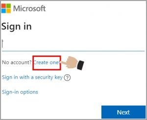 جهت ساخت اکانت ماکروسافت روی گزینه sign in کلیک کنید.
