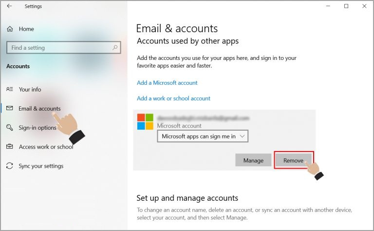 در قسمت Email & Account روی اکانت خود کلیک کنید و سپس با انتخاب دکمه Remove زیر حساب کاربری تعیین می کنید که این اکانت ازلیست نمایشی حذف شود.