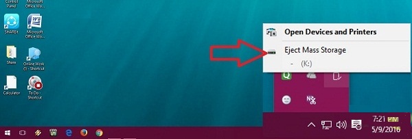 Safely Remove کردن فلش مطابق تصویر در قسمت سمت راست نوار ویندوز قلش را بزنید و بر روی آیکون دستگاه های متصل خارجی کلیک کنید. پنجره ای کوچک به همراه لیستی از دستگاه های خارجی متصل شده به سیستم را مشاهده خواهید کرد. روی نام فلش مورد نظر راست کلیک کرده و