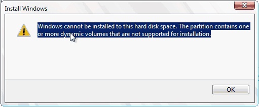 گاهی اوقات هنگام نصب ویندوز با اروری تحت عنوان ارور Windows cannot be installed to this hard disk space. The partition contains one or more dynamic volumes that are not supported for installation مواجه می شویم در واقع این ارور به پارتیشن های پویا اشاره دارد. دیده می شود و زمانی این اتفاق می افتد که شما بخواهید ویندوز را روی یک درایو داینامیک یا پویا نصب کنید. خب حالا چه راه حلی برای رفع این اعلان داریم؟