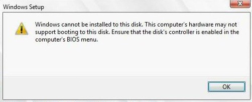 ارور Windows cannot be installed to this disk. This computer’s hardware may not support booting to this disk Ensure the disk’s controller is enabled in the computer’s BIOS menu به کنترلر دیسک شما ارشاره دارد اما نگران نباشید بع سادگی می توان آن را در حالت فعال قرار دهید: