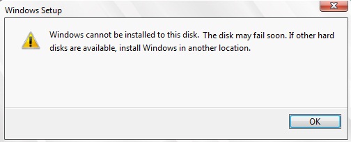 ارور Windows cannot be installed to this disk. The disk may fail soon. If other hard disks are available, install Windows in another location به معنی این است که درایو شما دارای مشکل می باشد و ارور زیر را نشان می دهد برای رفع آن باید سلامت درایو خود را چک کنید. برای اینکار می توانید از برنامه CHKDSK کمک بگیرید.