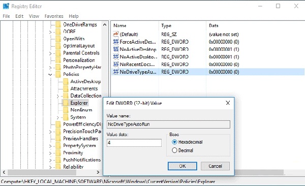 واحد dword جدیدی به نام NoDriveTypeAutoRun بسازید