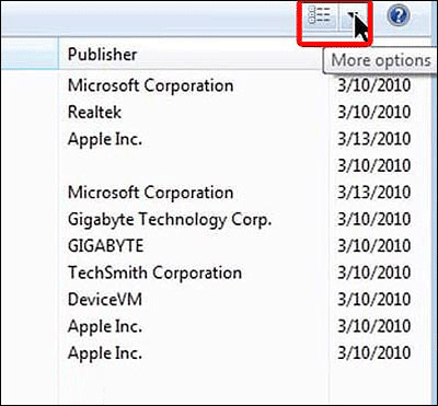 با اين كار پنجرهاي باز ميشود كه ليستي از برنامههاي نصب شده روي سيستم را نشان ميدهد شما ميتوانيد شيوه نمايش اين ليست را براساس تاريخ نصب، نام برنامه و يا مواردي ديگر تغيير دهيد