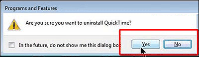 كه با كليك روي آن پيغامي نمايان شده كه از شما ميپرسد آيا مطمئن هستيد كه ميخواهيد برنامه انتخاب شده را از روي سيستم پاك كنيد يا خير با كليك روي دكمه