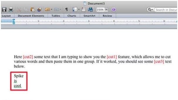 Spike سرگرم کننده است. با استفاده از این ابزار کلمات مختلفی را از یک سند برش می دهید و می توانید همه آنها را با هم بچسبانید. مورد خاصی برای استفاده از این ابزار وجود ندارد اما می دانید چه موقع به آن نیاز دارید. برای استفاده از آن، از