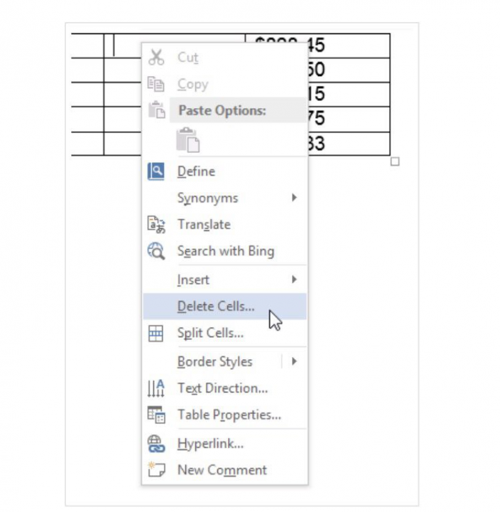 با موس کلیک راست کنید، سپس گزینه ی حذف شبکه(Delete Cells…) را از منویی که باز می شود انتخاب کنید.