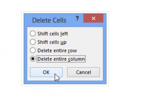 یک پنجره باز می شود . گزینه ی حذف همه ی ردیف ها یا حذف همه ستونها را انتخاب کنید و سپس روی ok کلیک کنید.