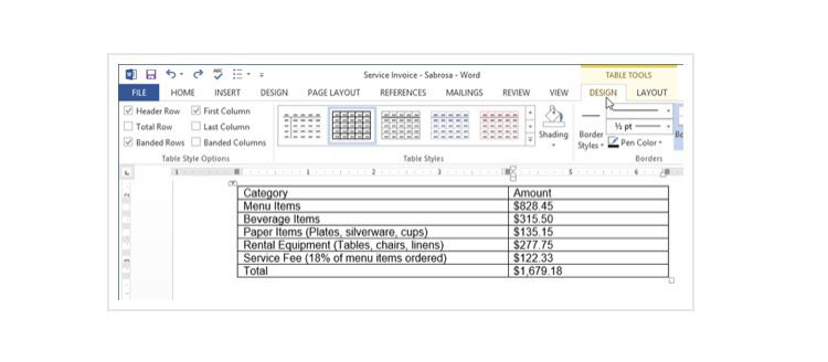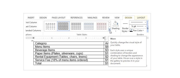 word شامل گزینه های مختلف برای یک جدول از جمله اضافه کردن ردیف یا ستون و تغییر سبک جدول است