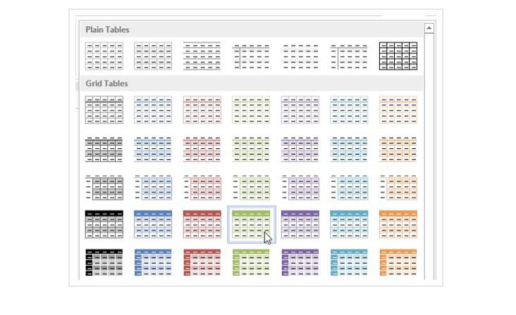 بسته به نوع جدولی که شما انتخاب می کنید ، گزینه های سبک جدول ممکن است تا حدودی اثر متفاوت داشته باشند. برای دریافت شکل دقیقی که نیاز دارید، تمرین کنید