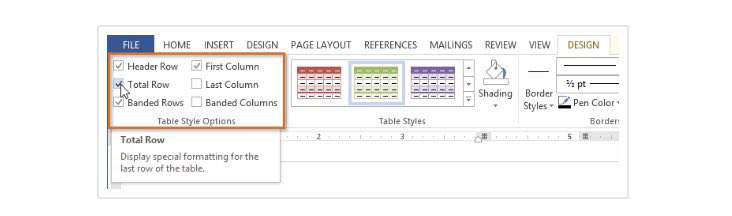 روی گزینه ی طراحی (Design) در سمت راست نوار کلیک کنید، سپس گزینه های دلخواه در تنظیمات جدول را انتخاب کنید.