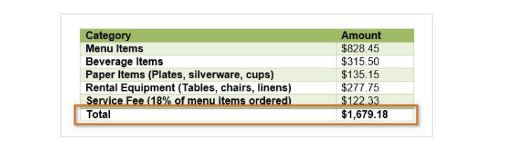 در این مثال، هر ردیف از اطلاعات شامل نام و قیمت موضوع است که توسط نوارها جدا شده اند. برنامه ی