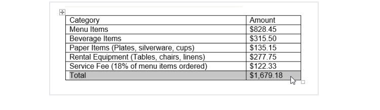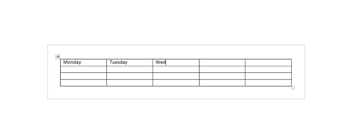 حالا شما می توانید نقطه ی ورود را هر جایی از جدول برای اضافه کردن متن قرار دهید.