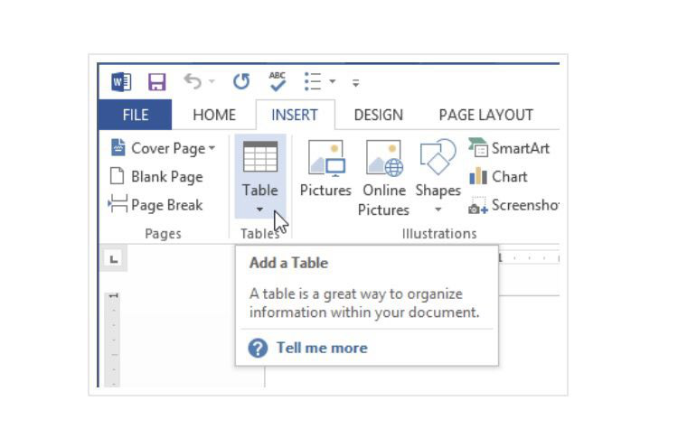 محل قرار دادن جدول را مشخص کنید، سپس نوار Insert را انتخاب کنید.