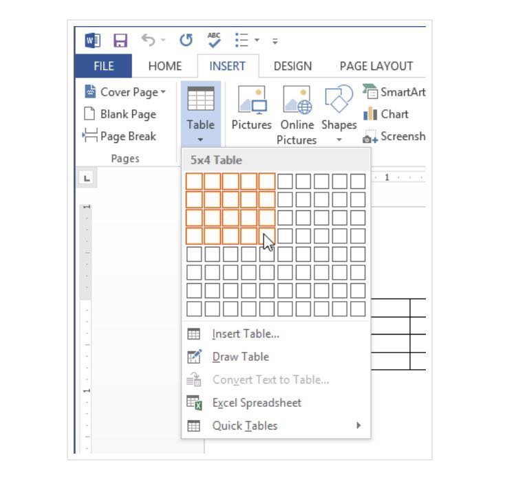یک منوحاوی شبکه مربعی شکل ظاهر می شود ، ماوس را روی شبکه قرار دهید تا تعداد ستونها و ردیف های جدول دلخواه را انتخاب کنید