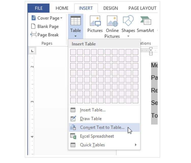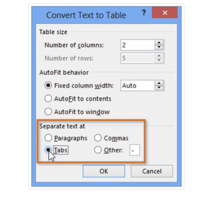 word می تواند این اطلاعات را به جداول انتقال دهد و برای این کار از نوارها برای جدا کردن اطلاعات استفاده می کند