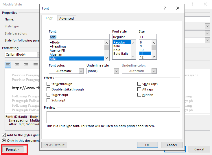 در پنجره باز شده بر روی Format کلیک کنید. در منوی کشویی روی Font کلیک کنید.