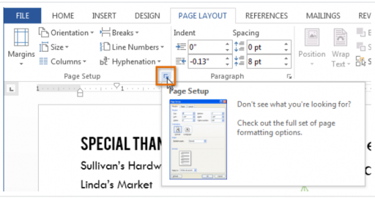 page layout باز کنید و کلید راهنمای کوچکی در گوشه پایین سمت راست از گروه