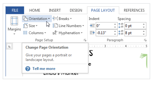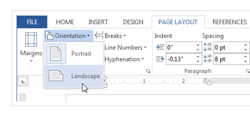 -حالت صفحه را تغییر دهید.اگر از مثال استفاده می کنید حالت صفحه را به افقی تبدیل کنید