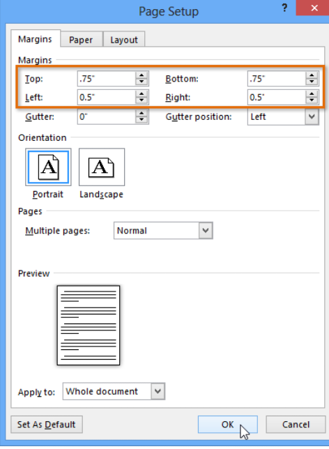 ورد حالتهای متفاوتی از پیش فرض سایز صفحه دارد که می توانید از بین آنها انتخاب کنید