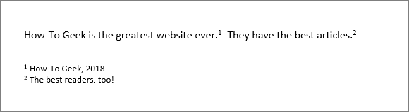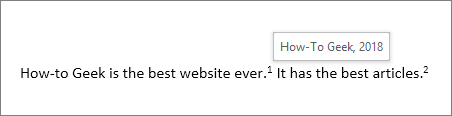 هنگامی که پاورقی های خود را اضافه کردید، می توانید مکان نما را روی نشانگر مرجع هر جمله قرار دهید تا پیش نمایش پاورقی را در متن مشاهده کنید