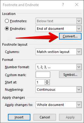 گزینه دیگر تبدیل تمام پاورقی های به ته نویس یا برعکس است. به جای تغییر هر یک به صورت جداگانه، این گزینه به شما امکان می دهد همه را یکباره تغییر دهید. اگر روی یک سندی که دارای ته نویس های زیادی است کار می کنید، این گزینه می تواند مفید باشد